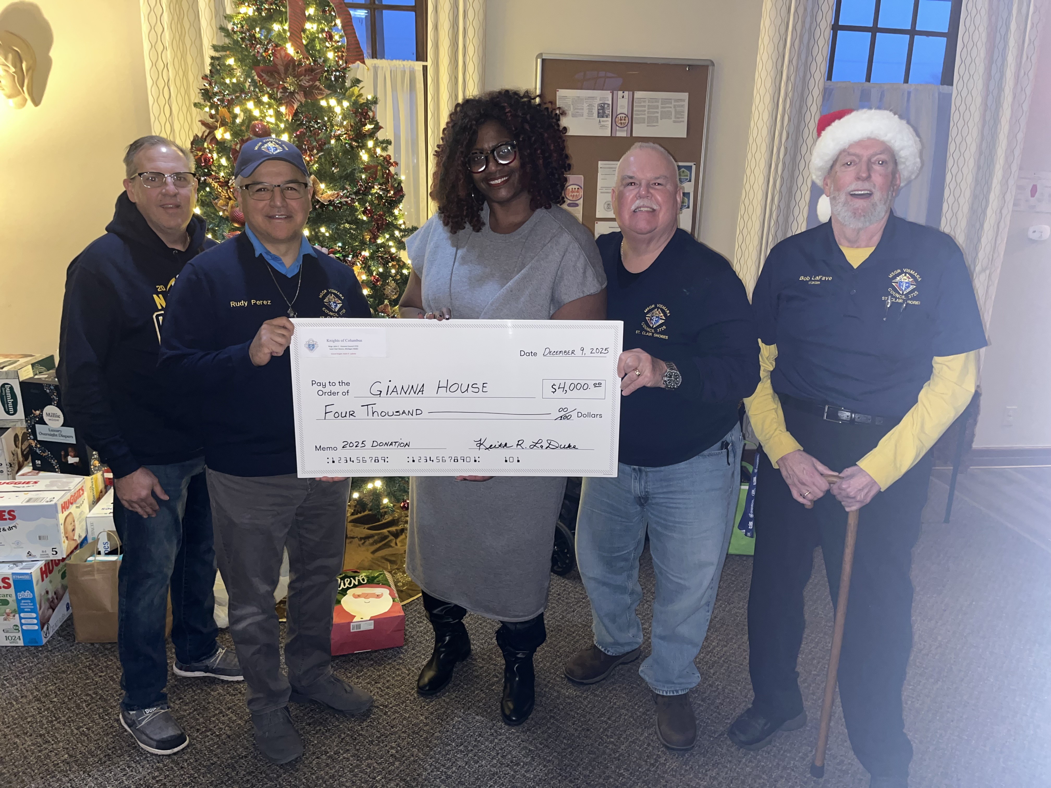 Vismara Council 3725 made a VERY large gift of support to the Gianna Maternity Home and met with the director Miss Joella Bush on Tuesday 12-09-2025. Miss Bush was very grateful receiving a check from the council again this year. Each year in the month of October Vismara Council runs a baby bottle drive at Our Lady of Hope Catholic Church and with the funds we get in the baby bottles they add to it to make a sizable donation.