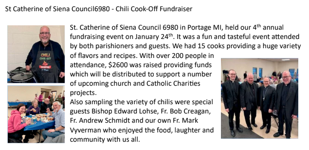 Au Lac Council 10724 in Ira Township a Breakfast For Babies fundraiser at Immaculate Conception Parish on January 24-25, 2026.