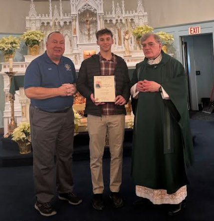 Pictured L-R: Grand Knight Mark Kehoe; Claire Rom; Andew Doppke; Christopher Rom;