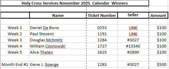 Here are the 2025 November Calendar Winners. Congratulations to everyone who won this month!!