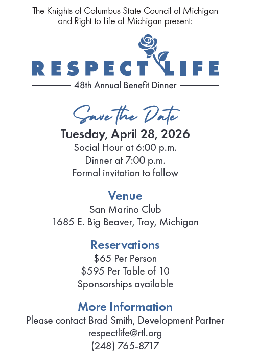 Au Lac Council 10724 in Ira Township a Breakfast For Babies fundraiser at Immaculate Conception Parish on January 24-25, 2026.