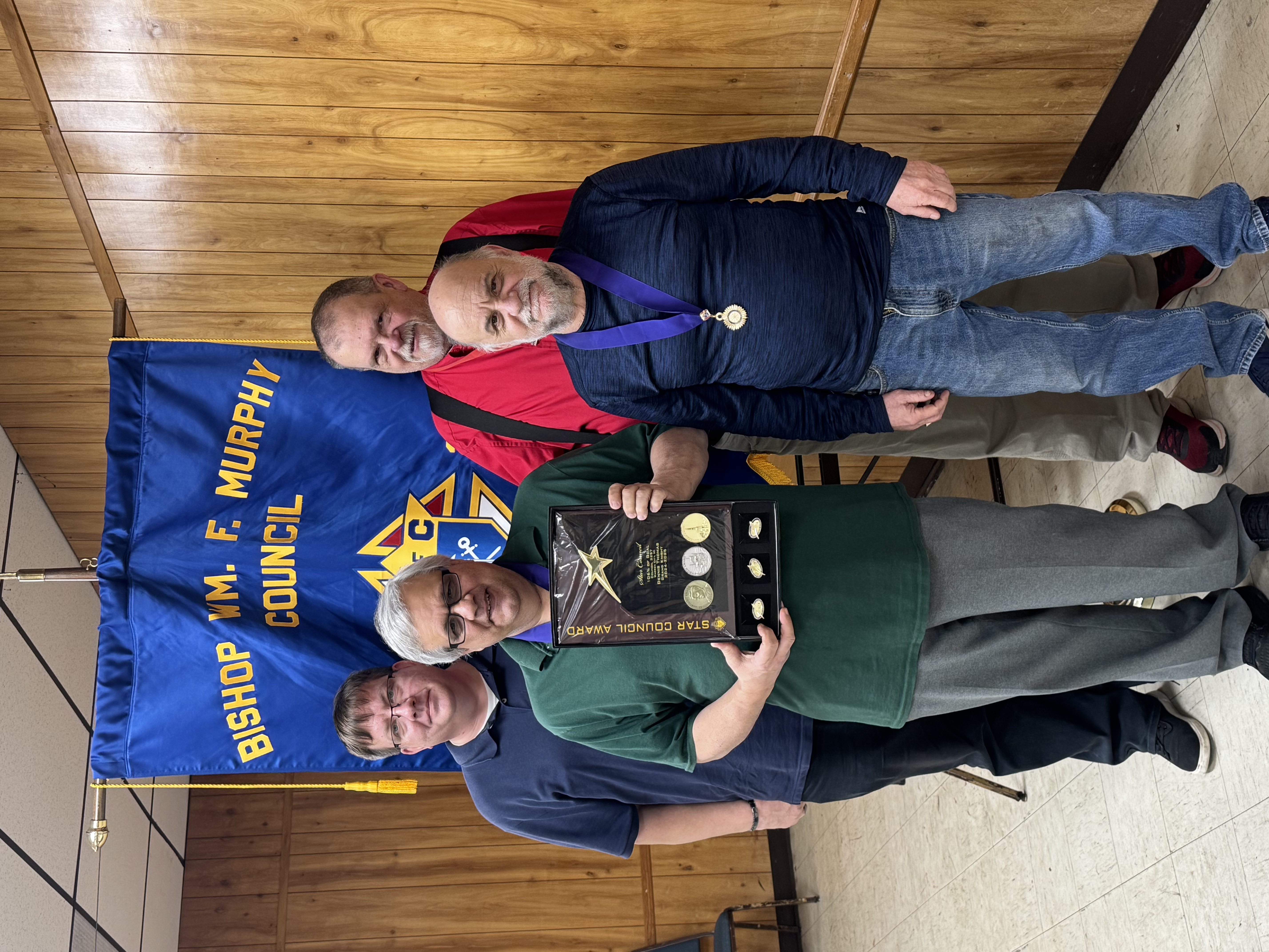 The attached picture is the presentation of Star Council by Kevin Hagadorn, DD127, to Dennis Thomas, GK, Tony Damico, DGK, and Jonathan Johnson, FS, of Bishop Murphy Council 3257. This is the 6th consecutive year that the council has earned Star Council.